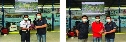 Left: Representative of CSK Landscape Services receiving token of appreciation from our Managing Director, Mr. Thomas Ng, and Executive Director, Mr. Alan Nah.